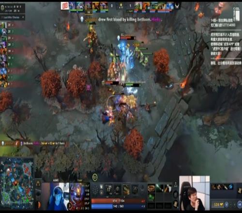 【35分钟】双方一路带线发育,终于在魔晶前爆发一波团战,xxs潮汐被动手后拉扯撤退,回头xm龙骑士入场留人,Ame小小山崩投掷拉满,潮汐回跳交大招顶起3人,将BB打了一波四人团灭。
