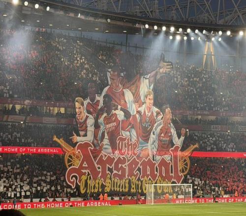 北京时间11月24日凌晨0:30,英超第12轮焦点战,阿森纳在主场迎战热刺。本场比赛开场时刻,阿森纳球迷也打出一幅巨幅Tifo震慑对手,该Tifo上有着多位枪手队史传奇。