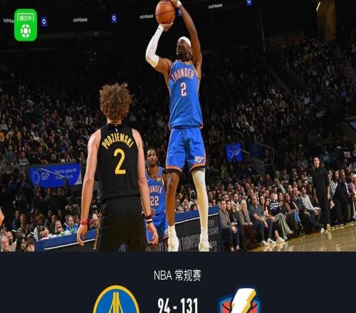 北京时间1月3日,NBA常规赛争夺继续,在库巴追三大核心缺席的情况下,勇士94-131惨败给雷霆2连胜终结,此役雷霆打出10-3开局,早早建立起两位数领先,次节勇士队攻防彻底崩盘,三节结束时