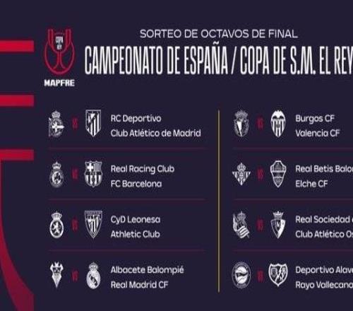 国王杯16强对阵:巴萨客战桑坦德竞技,皇马客战阿尔瓦塞特