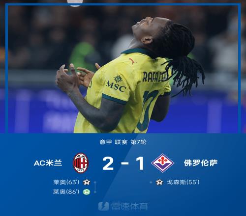 雷速体育10月20日报道宣称 25/26赛季意甲联赛第7轮,AC米兰2-1战胜佛罗伦萨。上半场比赛两队互交白卷,下半场比赛戈森斯混战破门帮助佛罗伦萨首开纪录。随后莱奥远射破门扳平比