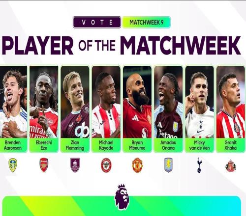 北京时间10月28日,英超官方公布了第9轮比赛日的最佳球员候选,其中埃泽、姆伯莫、范德芬、扎卡在列。阿伦森(利兹联2-1西汉姆联)这位美国前锋在埃兰路的比赛中为利兹联贡献了一